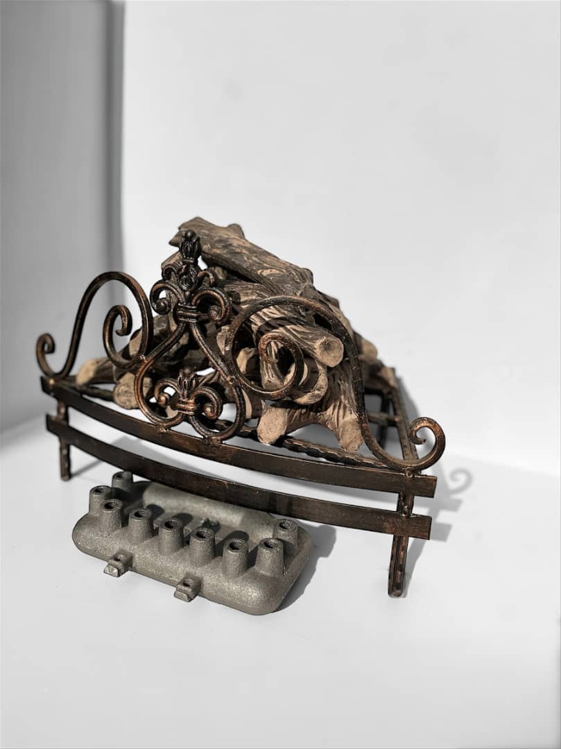 منقل شومینه 46 سانتی متری دنیای گاز با رنگ کوره ای ابروبادی به رنگ مشکی و مسی ،